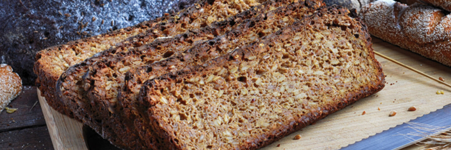 6. Whisk the remaining egg with a splash of milk or water to form an egg wash. Brush the top of the dough with some egg wash and sprinkle with pumpkin and sesame seeds if desired. Bake in the hot oven for 35 to 40 minutes, until the loaf sounds hollow when you tap the bottom. Allow to cool in the tin slightly before removing onto a wire rack to cool completely.