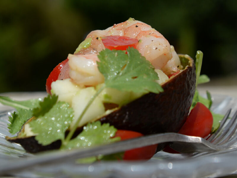 Place the mixture back into the avocado skins and serve immediately.If preferred serve into a bowl.